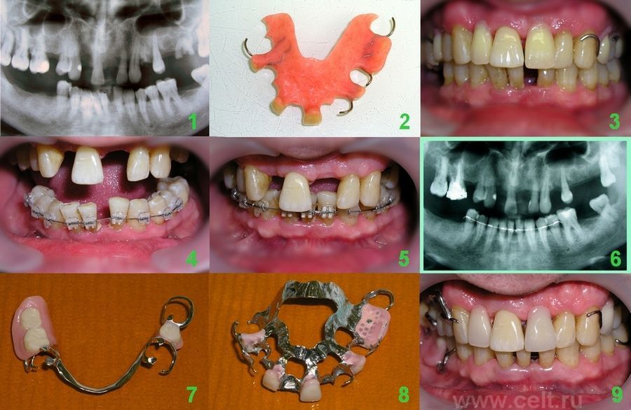 6) Ортопед – с помощью зубного техника изготовил бюгельные протезы на кламерах. Восстановил не только эстетику, но и жевательную функцию