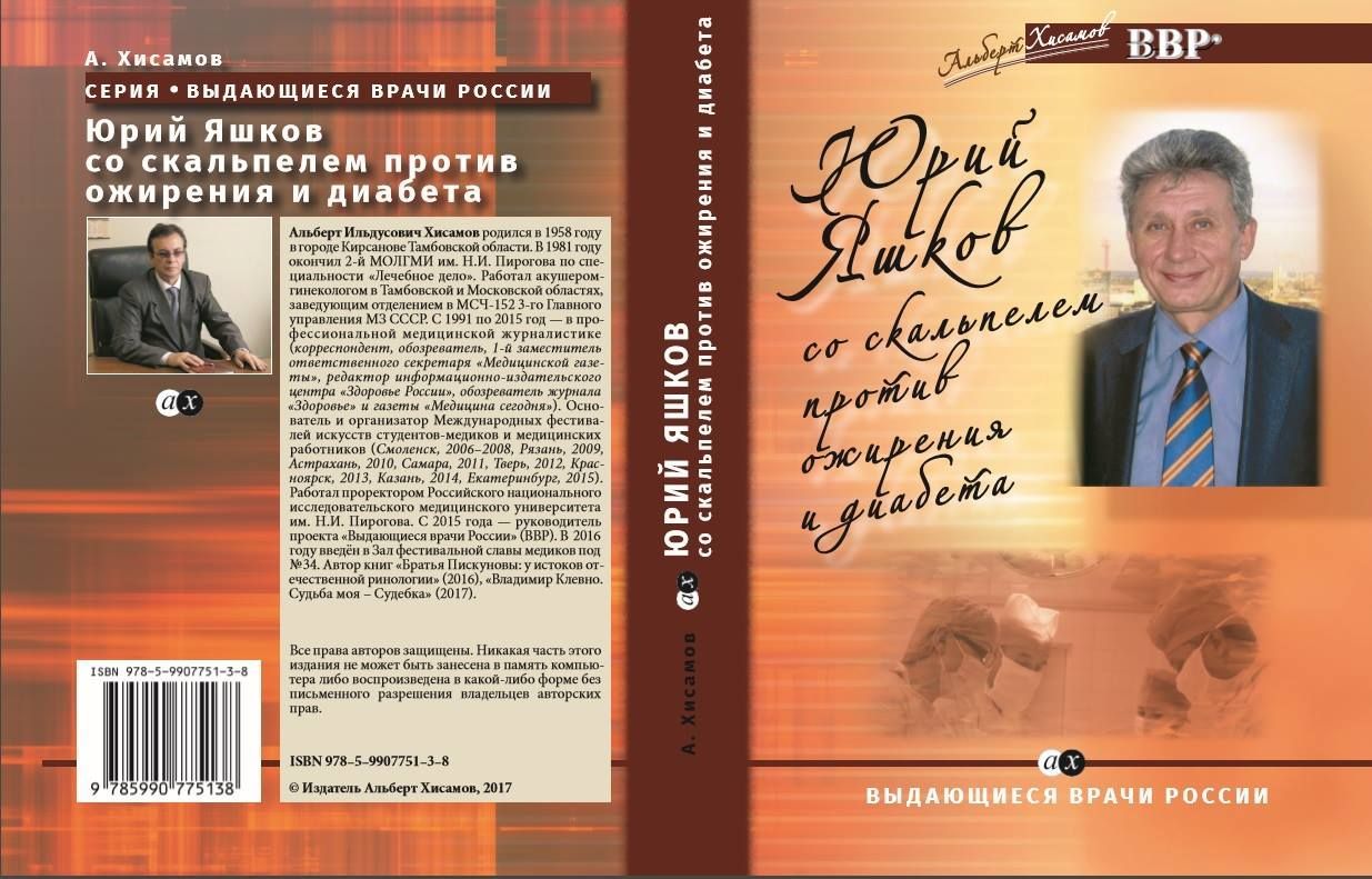 Одним из ценных подарков, приуроченных к этой знаменательной дате стал выпуск книги Альберта Хисамова, третьей книги из серии "Выдающиеся врачи России". В ней описаны основные этапы жизненного пути Юрия Ивановича Яшкова, которые тесно связаны с развитием и становлением хирургии лечения ожирения и сахарного диабета 2 типа в мире и в России. Для тех, кто не знает – Юрий Иванович один из тех, кто внес самый большой вклад в создание этого нового направления в хирургии, доказал его актуальность и эффективность. Сейчас эта актуальность признана во всем мире.